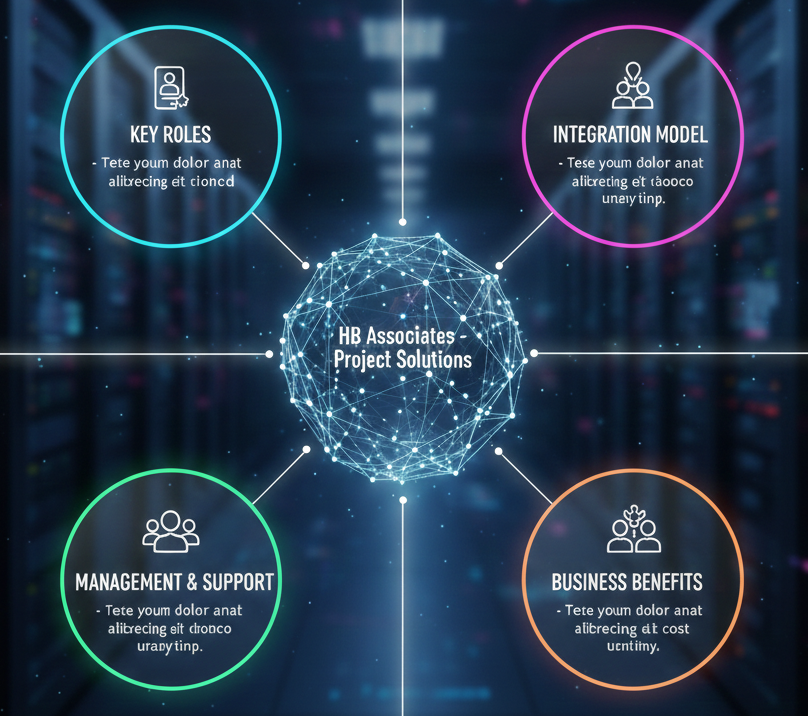 HB Associates deploys skilled developers, testers, analysts, designers, project managers, and ERP specialists who function as an extension of your internal teams. These resources follow your workflows, tools, and delivery practices, ensuring complete alignment with your project goals. We manage onboarding, replacement, documentation, and continuous performance monitoring.